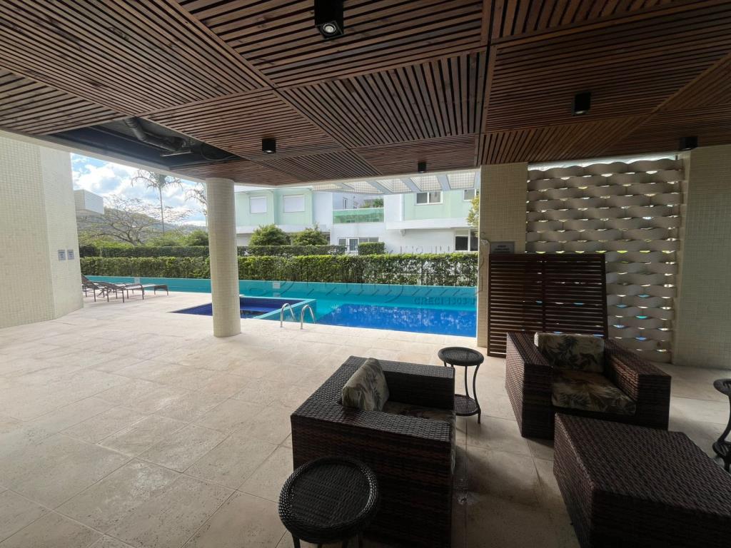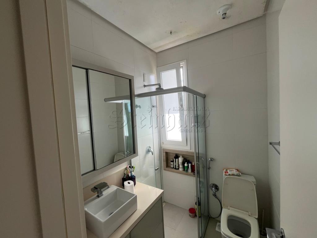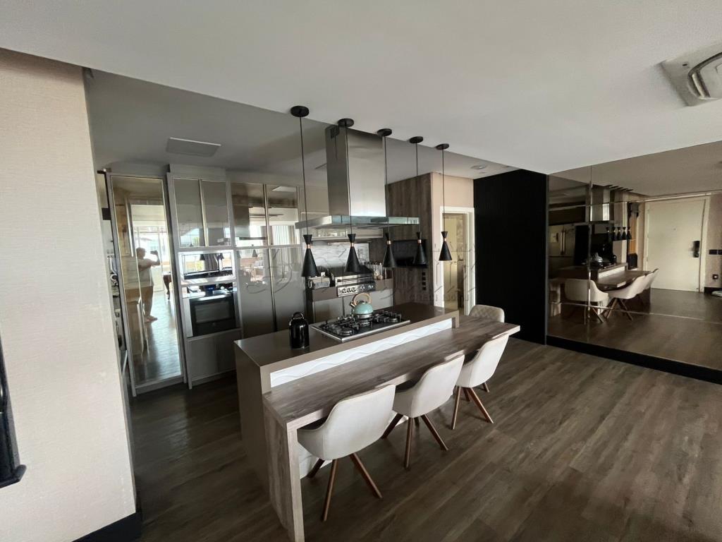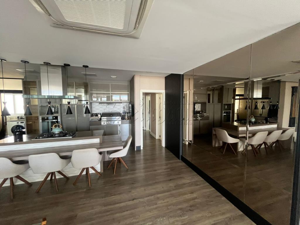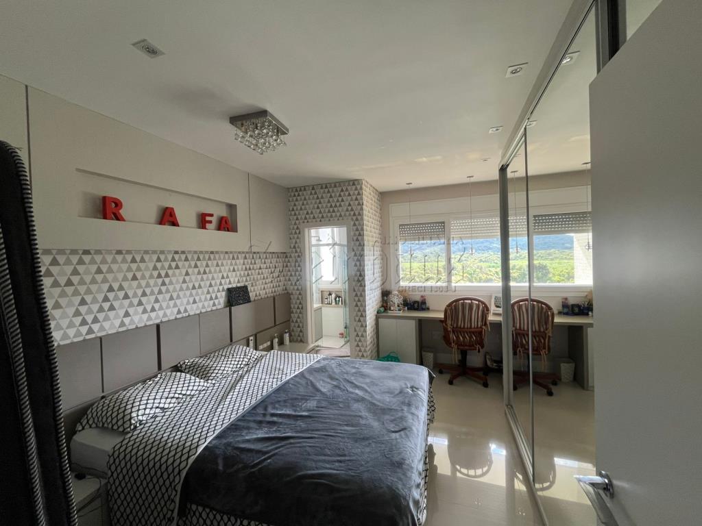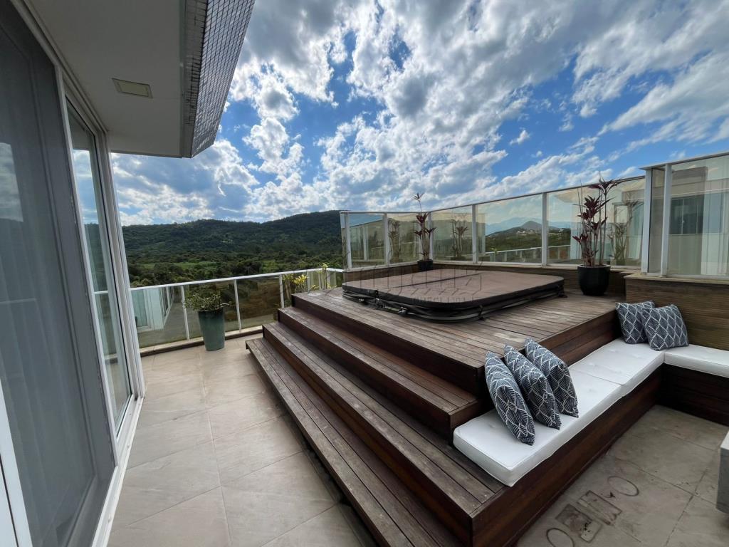 Com 3 suítes, 2 cozinhas, sala, sala com mesas de jogos, 2 vagas de garagem, lavabo, jacuzzi, área de serviço, churrasqueira.
